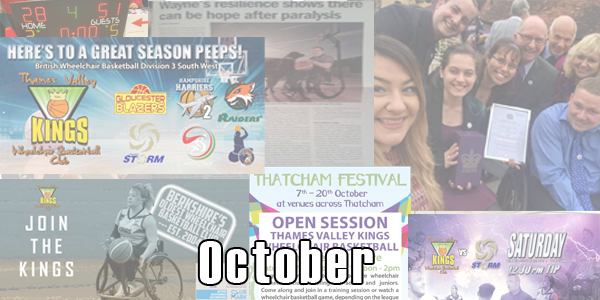 October saw the tip-off of the 2017/18 season, we wished everyone the best of luck! In our first game against Swansea Storm we saw defeat 28-51. We kicked off our recruitment campaign, Had some open sessions for Thatcham Festival, Club captain Wayne hit the headlines and we also collected our Queen's award for Voluntary Service at a ceremony with the Lord Lieutenant of Berkshire.